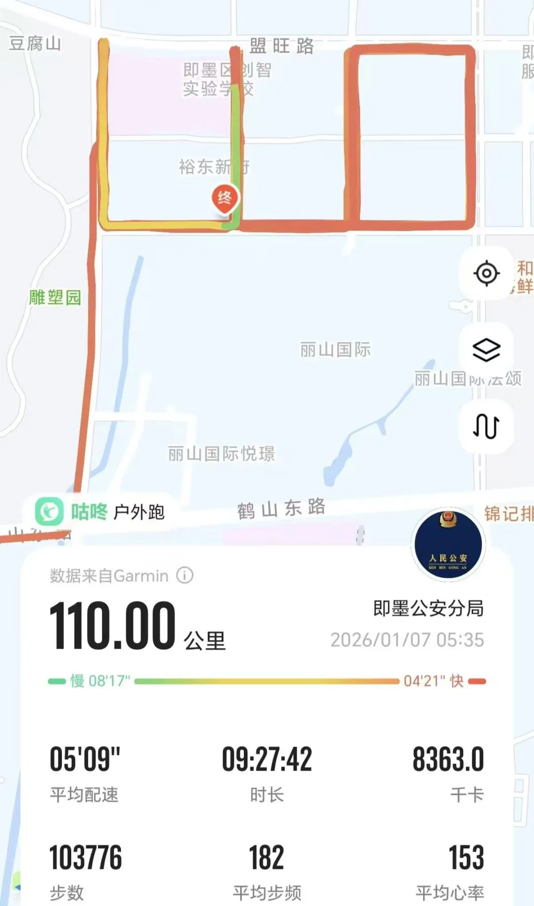 在第六个中国人民警察节来临之际,即墨公安以110公里接力跑的形式献礼人民警察节,以奋进之姿赓续藏蓝使命。