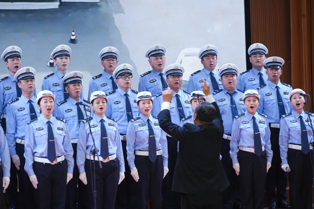 现场气氛热烈、催人奋进,11支挺进决赛的队伍警容严整、精神饱满,用嘹亮的歌声抒发对党、对祖国、对人民的无限忠诚与热爱。一首首经典红歌,深情回顾了党的光辉历程,展现了公安队伍团结一心、勇担使命的精神风貌。