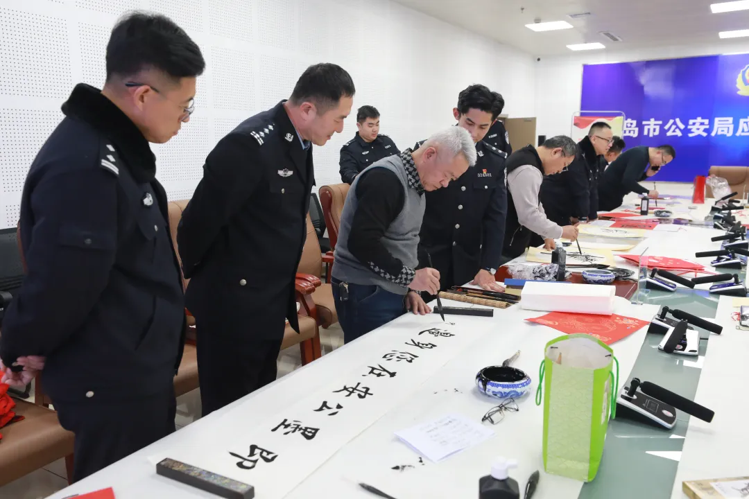 1月9日下午,即墨公安邀请书法名家走进警营,艺术家们挥毫泼墨,以笔寄情,一幅幅遒劲有力的书法、栩栩如生的画作跃然纸上,既展现了传统文化魅力,也饱含对公安队伍的深情祝福。此次活动进一步丰富了警营文化生活,民警辅警们驻足观摩、交流互动,在墨香中感受文化力量、提振精神士气。