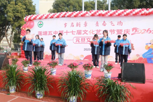 2025年12月31日下午,暖阳融融,洒满南昌县莲塘五中操场。全体初一、初二师生齐聚一堂,共同迎来以“岁启新章 青春飞扬”为主题的第十七届文化艺术节暨庆元旦文艺汇演。