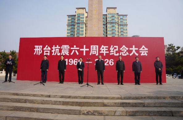 2026年3月8日上午,邢台抗震60周年纪念大会在河北省邢台地震纪念碑广场举行。河北省地震局党组成员、副局长丁彦慧,邢台市委常委、常务副市长郑传记出席活动。邢台市、县相关部门负责同志,红山基准台相关同志,地震专家、地震亲历者、学校师生等各界代表参加了此次活动。