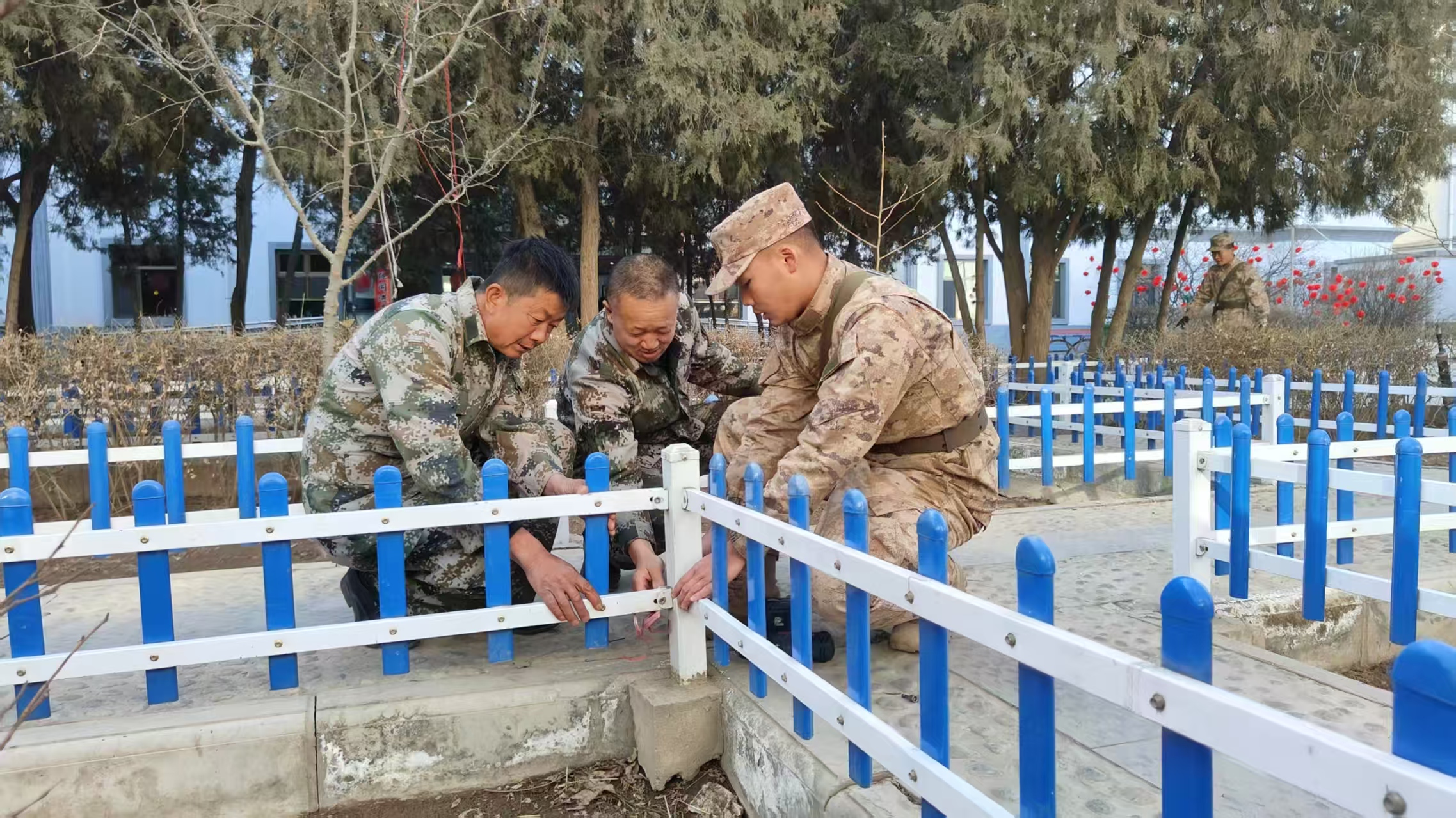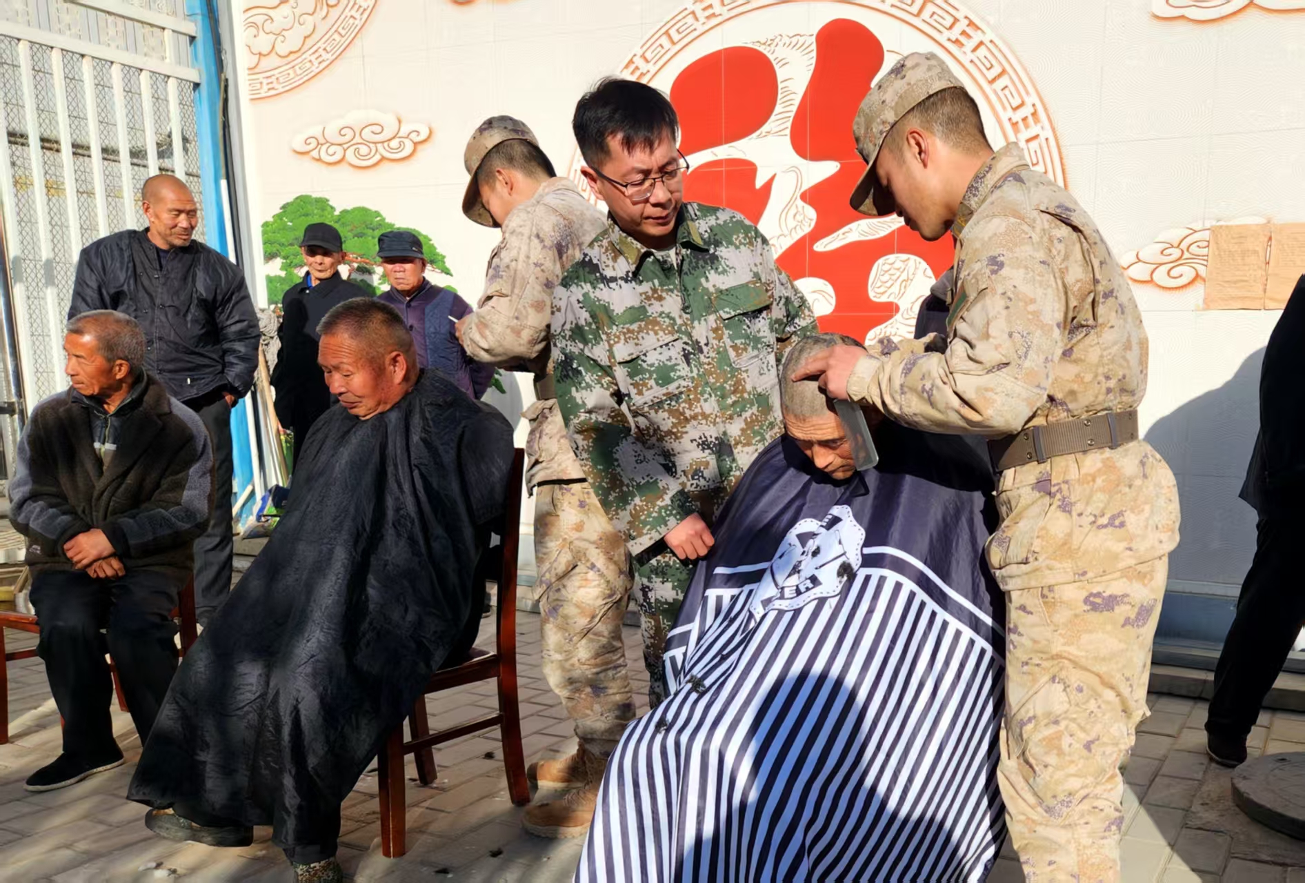不仅如此,来自凉州区退役军人事务局志愿服务队与驻武某部官兵的到来,让平日里安静的院落一下子热闹起来。义诊小分队为老人测血压、量血糖,细心讲解疾病预防知识;理发小分队前,老人们争相排队,讨论着谁的手艺更好;卫生保洁小分队走进宿舍,为行动不便的老人整理床铺、修剪花草;还有一群维修能手,拿出专业工具,让坏了半年的收音机重新响起,让闲置的电风扇再次转动。